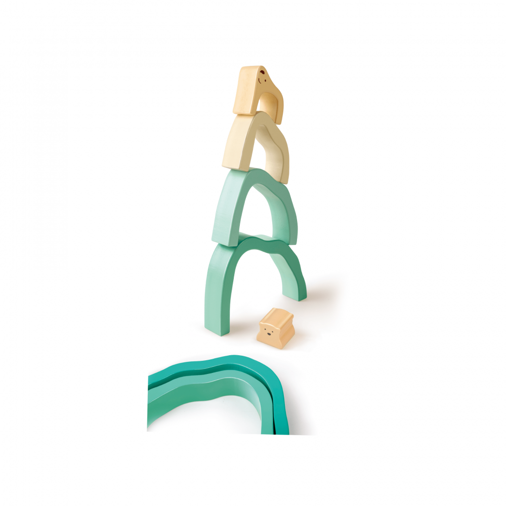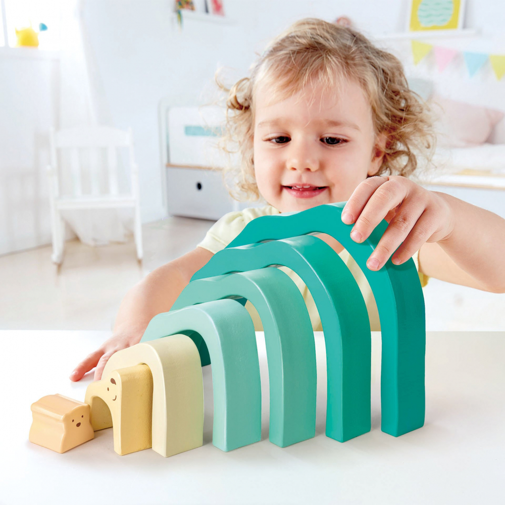 Forma curbata, culorile moi si senzatia de inalta calitate ale acestei jucarii Montessori de dezvoltare sunt irezistibile pentru copii mici.