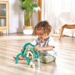 Jocul cu aceasta jucarie il va incuraja pe copil sa-si spuna propriile povesti – chiar si luand blocurile cu forma neregulata si folosindu-le pentru a construi peisaje cu pesteri, valuri sau aisberguri.