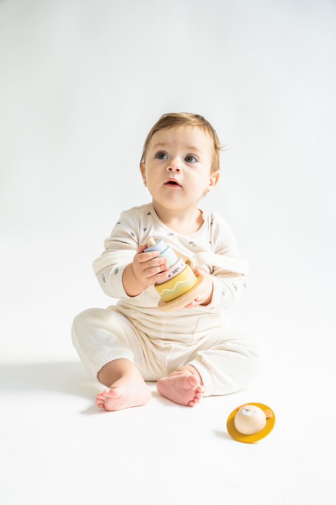 • Aceasta jucarie de stivuire din lemn FSC este o modalitate distractiva de a dezvolta coordonarea mana-ochi printr-o joaca interactiva si practica. Copiii sunt incurajati sa plaseze inelele din lemn in ordinea corecta si sa le stiveze pe piramida.