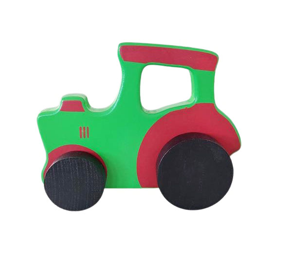 Jucarie din lemn Tractor verde cu forme rotunjite,vopsele sigure non-toxice,dimensiune 15x12 cm