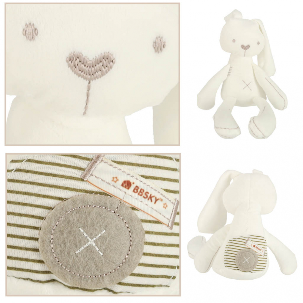 Iepurasul este umplut cu plus moale, iar granulele din maini si picioare ii dau o greutate placuta, usurand prinderea si oferind o senzatie realista. Culorile sale stralucitoare si designul prietenos vor atrage imediat atentia oricarui copil.