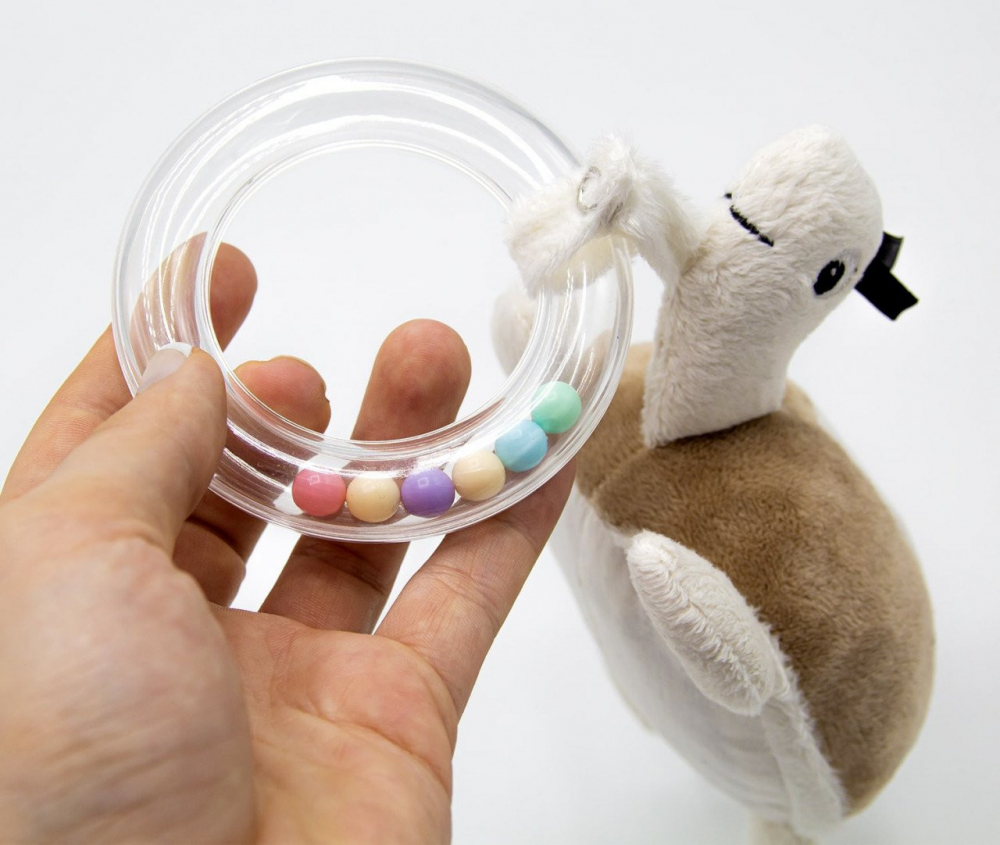 - plusul este prevazut cu jucarie zornaitoare situata in interior