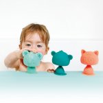 Koala, maimuta si ratonul sunt gata sa insufleteze orele de masa si de joaca ale bebelusului! Datorita ventuzelor lor, aceste creaturi draguțe se ataseaza instantaneu pe orice suprafata neteda: masa, scaun inalt, cada sau chiar gresie.