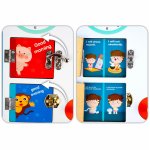➡Există o ușă care se deschide în partea de jos a plăcii. Prima ușă are inscripția „Bună dimineața”, iar pe a doua ușă scrie „Noapte bună”. După ce deschidem ușa, vedem o fată care desfășoară anumite activități, cu descrierea lor în engleză dedesubt.