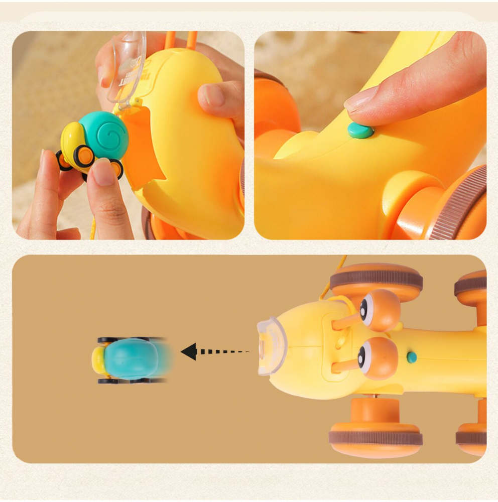* Melcul educativ este echipat cu un lansator pentru un mic melc Turbo Fast. Doar asezati melcul mic in compartimentul special si apoi apasati butonul pentru a lansa melcul cu viteza mare.