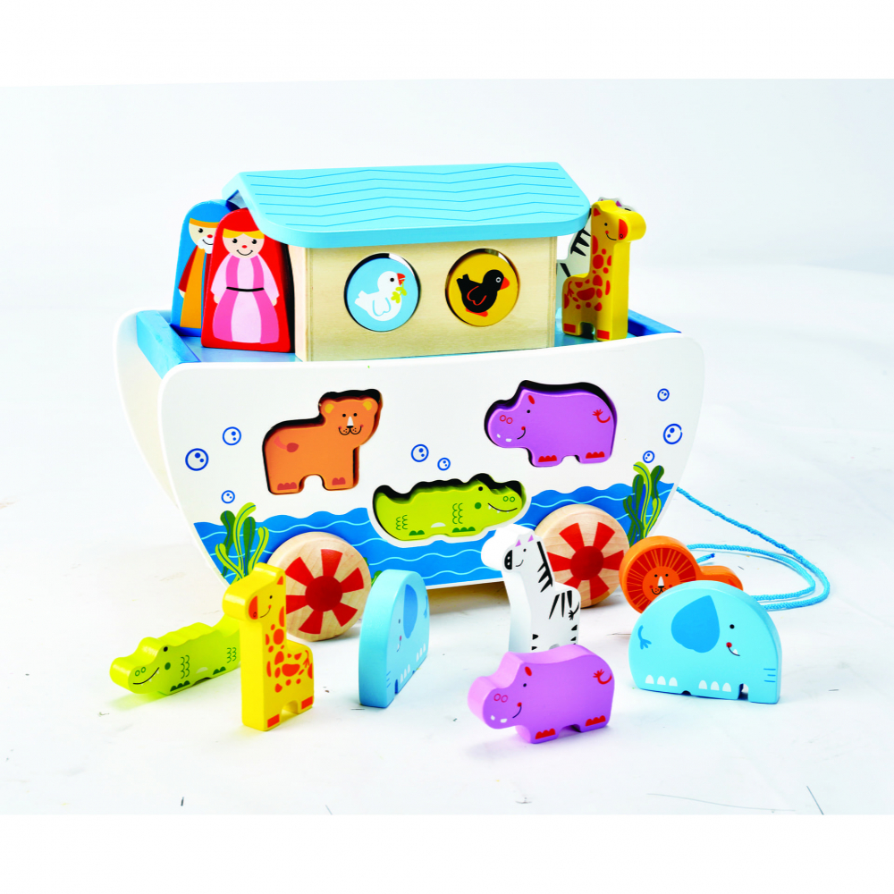 Aceasta Arca lui Noe din lemn frumos lucrata este o jucarie multifunctionala 3 in 1.