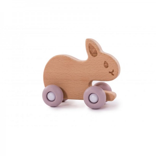Jucarie iepure pe roti Bo Jungle din lemn roz