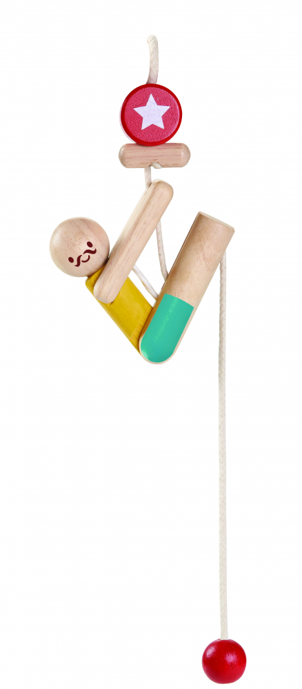 Acrobatul urca pe sfoara pe masura ce copilul trage de sfoara atasata.