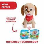 2. Tehnologie cu infrarosu pentru povestire interactiva: datorita tehnologiei cu infrarosu, atunci cand micutii deschid cartea, Lucky incepe sa povesteasca, iar povestea continua pe masura ce acestia intorc paginile.