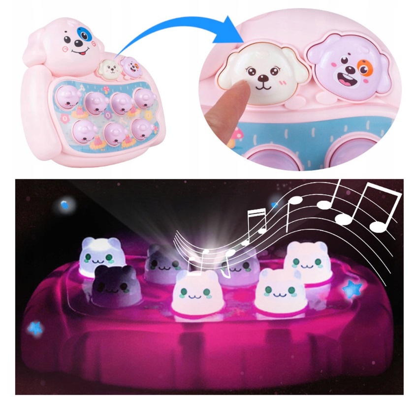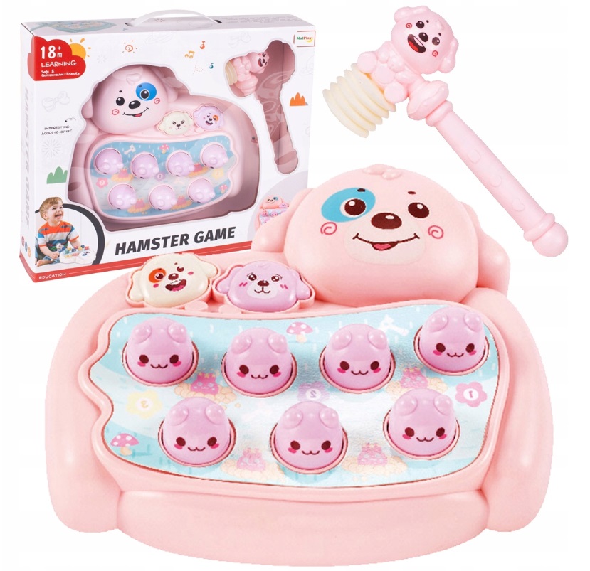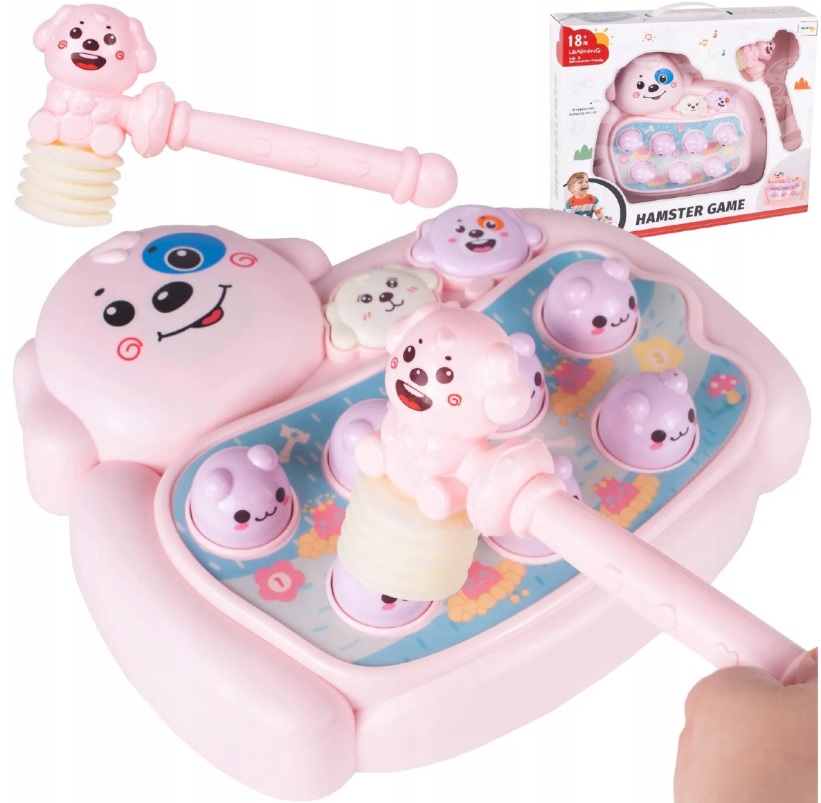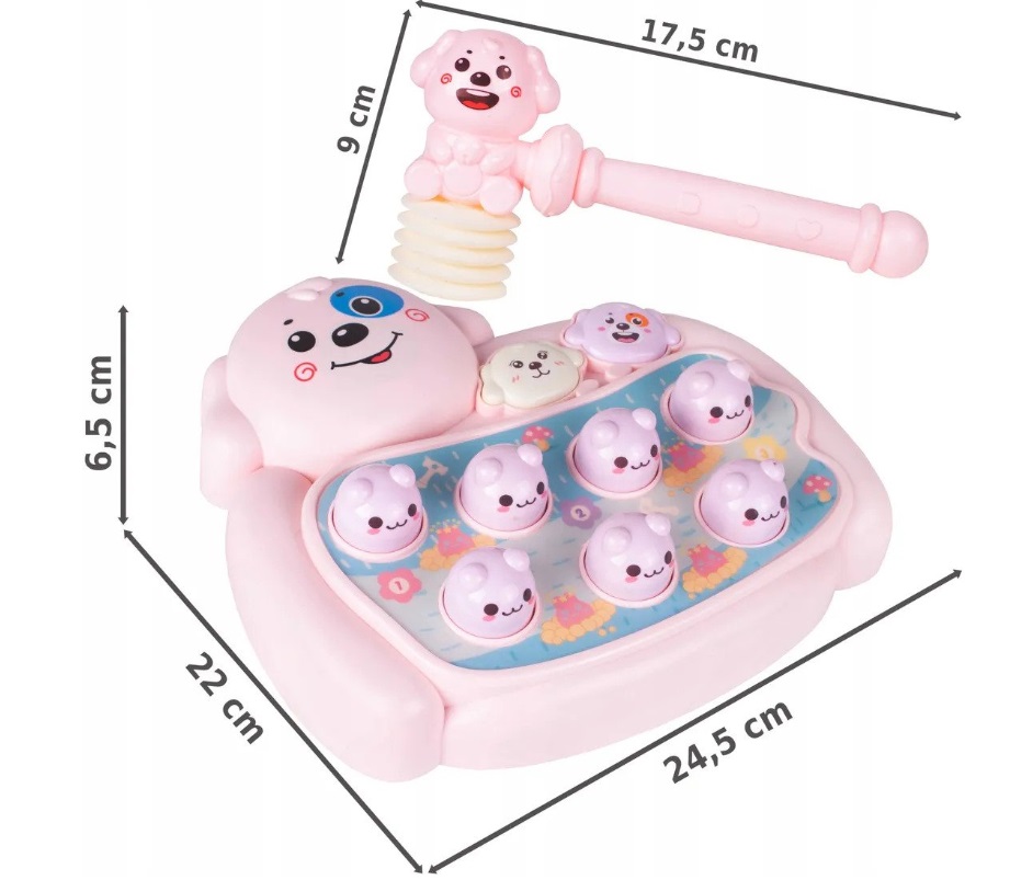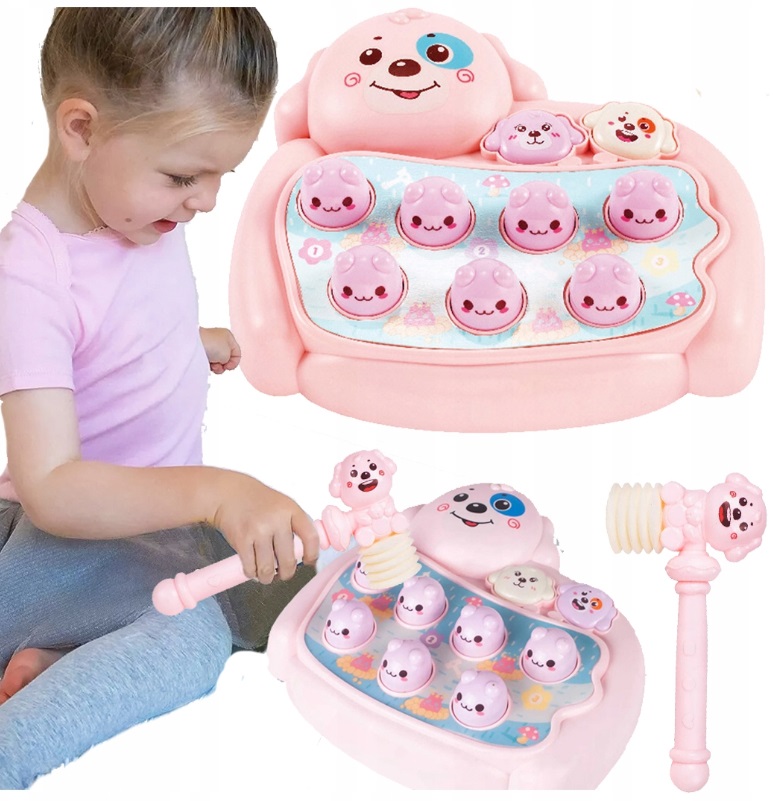 Jucarie interactiva cu ciocanel sunete si lumini Puppy Pink