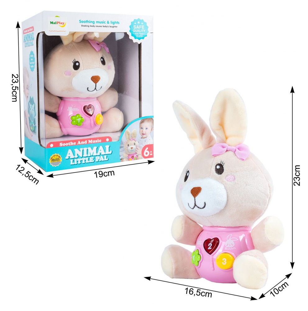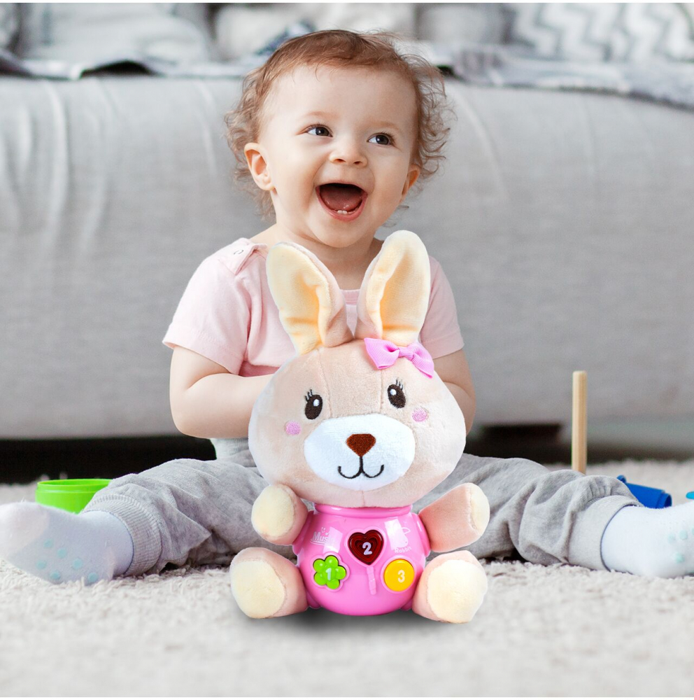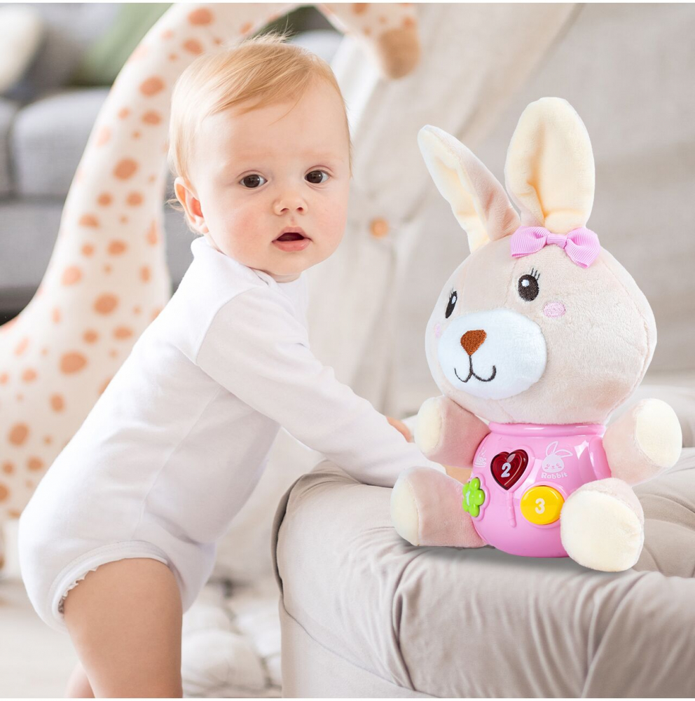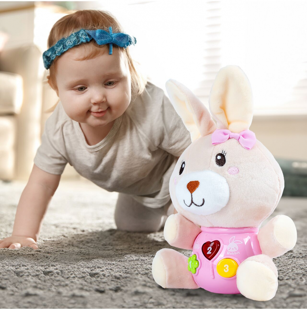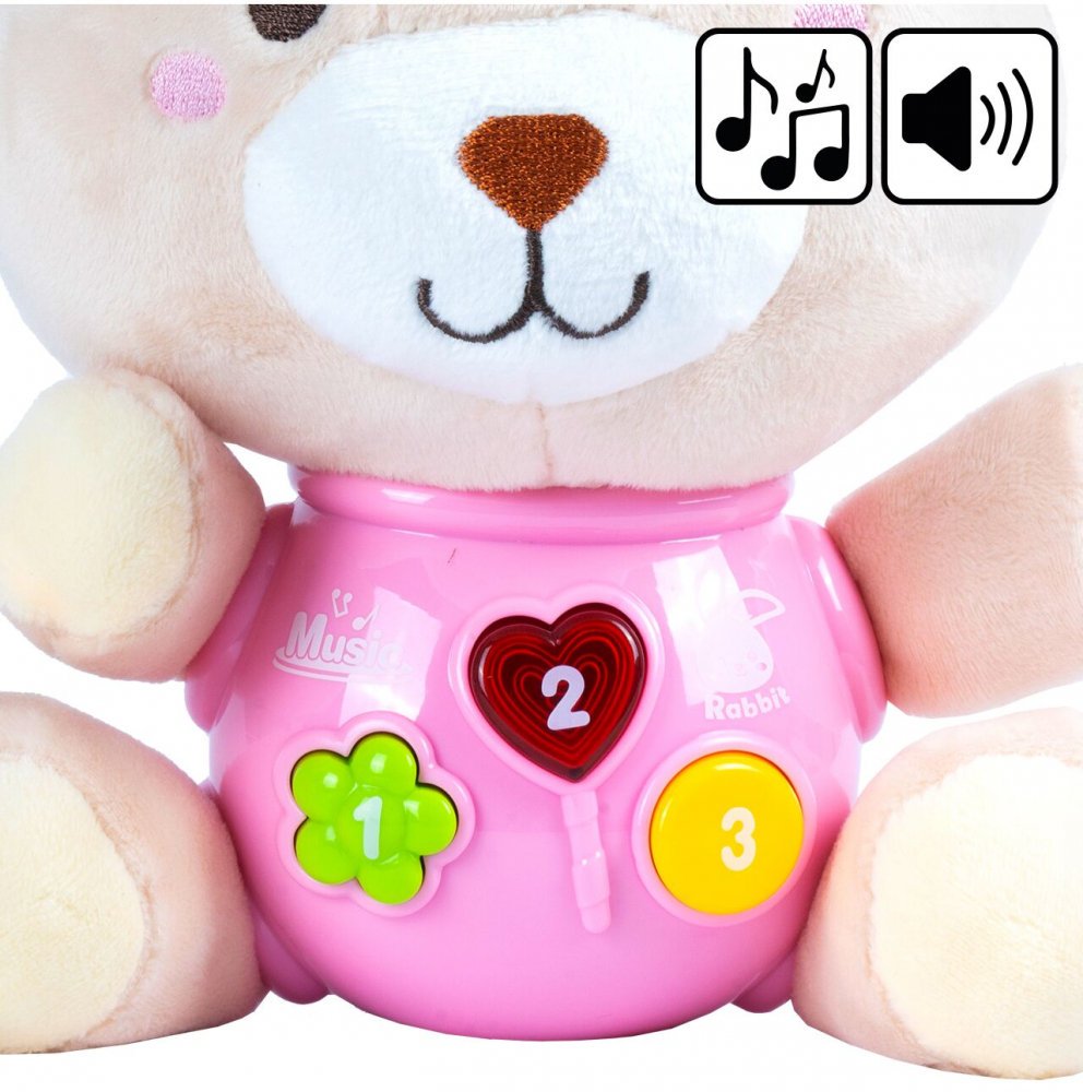 * Simpaticul iepuras poate emite sunete interesante, melodii vesele, care va vor iincanta cu siguranta.