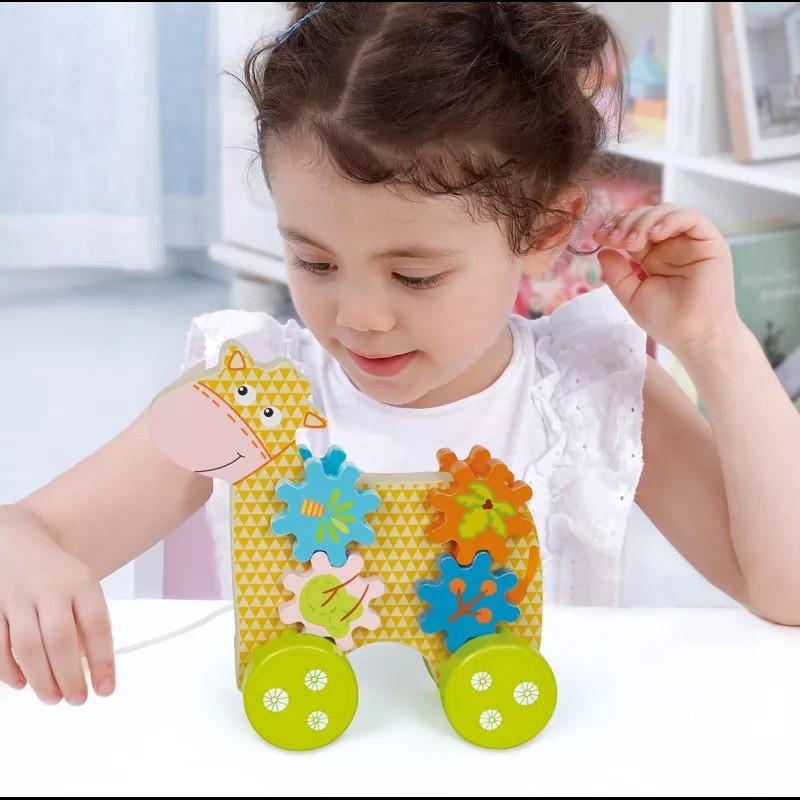 Jucarie interactiva de tras din lemn 18x7x14cm Giraffe