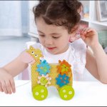 * Datorita faptului ca micuta Girafa are roti care se invart in timpul miscarii, fiecare copilas va dori sa mearga cat mai mult pentru a se juca cu rotitele si observand actiunea unui mecanism interesant.