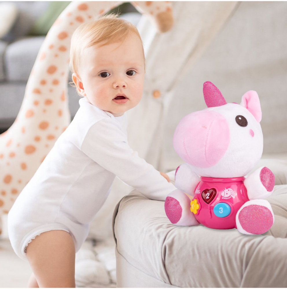 Jucarie interactiva din plus cu sunete si lumini unicorn