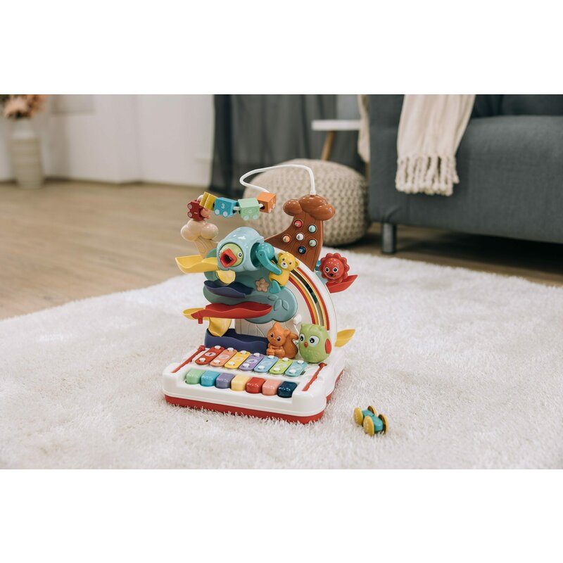 - Prin intermediul diferitelor jocuri oferite de jucarie, copilul tau isi va dezvolta abilitatile motorii fine, coordonarea ochi-mana si imaginatia.