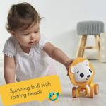 • Incurajeaza explorarea: Coama care fosneste, bila care se invarte, margelele si sunetele facute atunci cand capul jucariei este rotit motiveaza micutul sa exploreze si sa se joace.