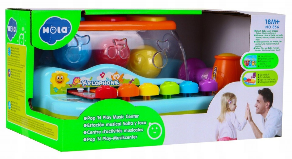Jucarie interactiva xilofon Hola cu ciocan si bile colorate
