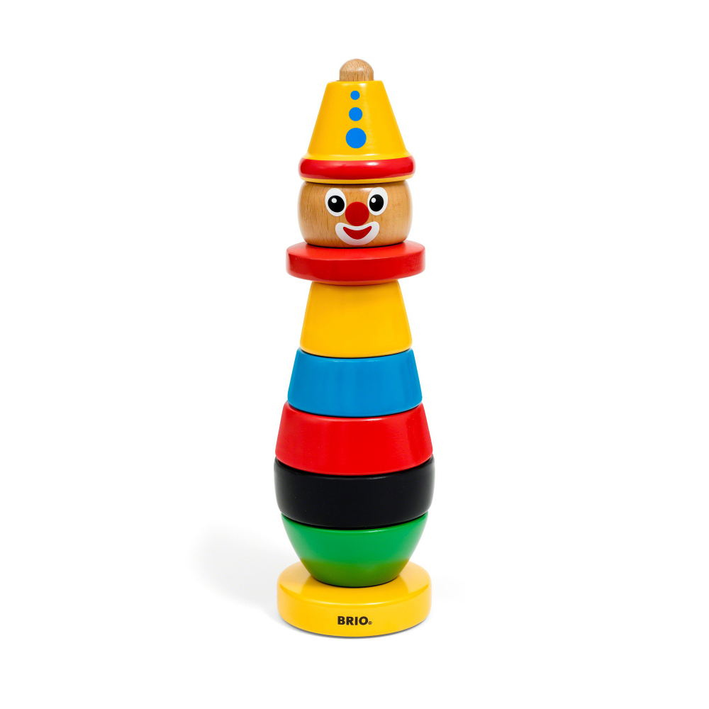 Cu aspectul retro si design original, aceasta jucarie de stivuit din lemn clovn de la BRIO, durabila si sigura este tovarasul de joaca perfect pentru toti copiii mici!