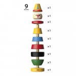 Un clovn fericit si colorat pentru a te inveseli! Jucaria noastra clasica de stivuit din lemn din 1958 ne invata ordinea, culorile si focalizarea.