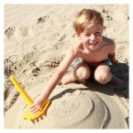 - Poate fi utilizata ca lopatica, sita pentru nisip, grebla, stropitoare. Cu ajutorul ei, copiii pot sapa gropi si santuri, pot construi fundatii si sculpta structuri de nisip, pot grebla nisipul si pot crea modele suplimentare, pot cerne nisipul pentru a ajuta la indepartarea cochiilor si a pietricelelor si a obtine un nisip cat mai fin si neted. De asemenea, manerul gol poate fi folosit ca palnie de apa pentru a da o nota artistica si a desavarsi cele mai grozave structuri de nisip de pe plaja.