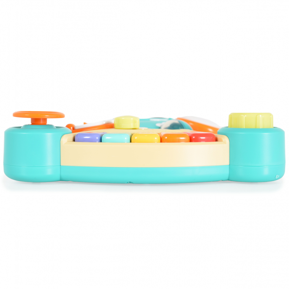 Pianul din partea de jos a dinozaurului are multe si diferite tipuri de melodii, cantece si sunete de animale, numaratoare si tonuri de pian.
