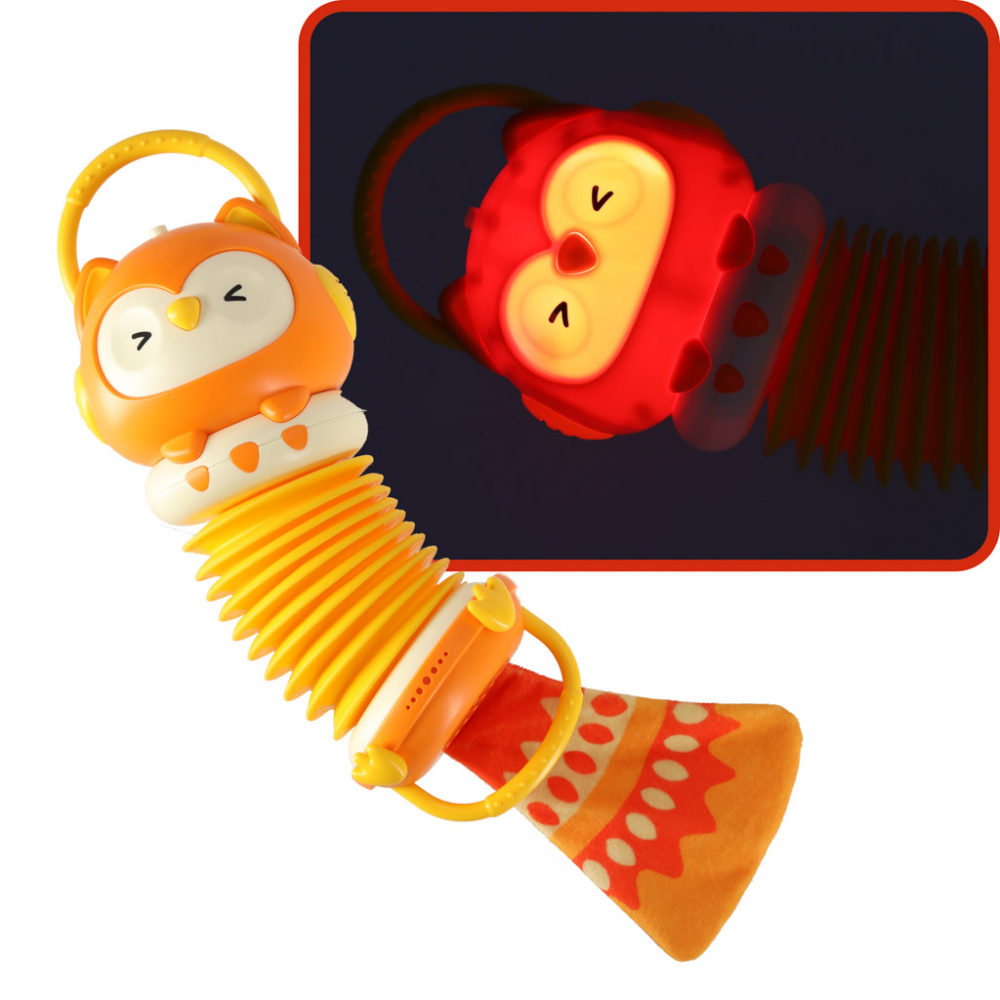 Jucarie muzicala pentru bebelusi Bufnita Acordeon cu LED 30 cm Orange