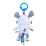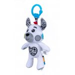 Catelusul face parte din familia jucariilor senzoriale dedicate bebelusilor inca de la nastere datorita contrastului alb-negru, a panglicilor colorate si a texturilor variate care stimuleaza vederea si simtul tactil.