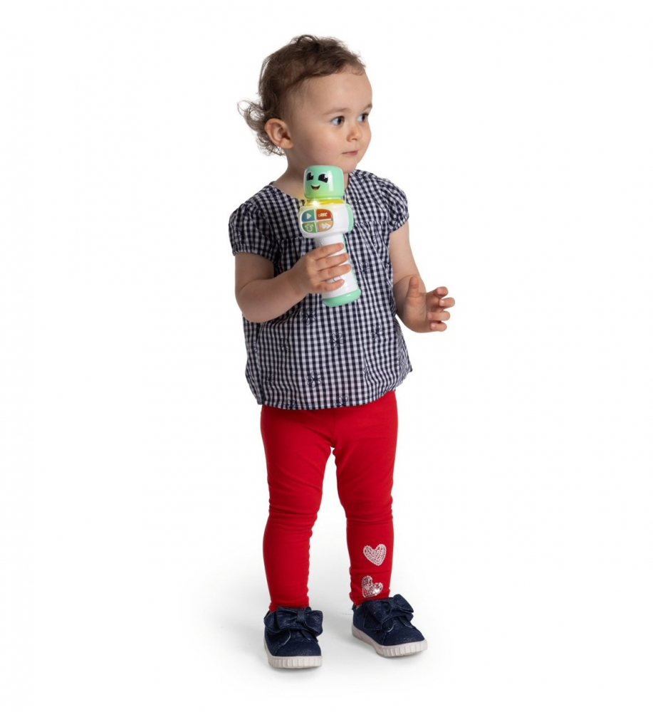 Microfonul interactiv Chicco ofera copiilor o experienta muzicala distractiva si creativa permitandu le sa inregistreze si sa amplifice vocea sa experimenteze efecte sonore si sa devina mici artisti in spectacolele lor.
