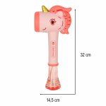 Jucarie pentru baloane de sapun, Ikonka, cu lumini si sunete, dimensiune 32 x 14.5 cm, Bubble Pink Unicorn