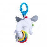 Este decorat cu etichete de texturi variate și inele colorate care zăngănesc vesel atunci când se agită.