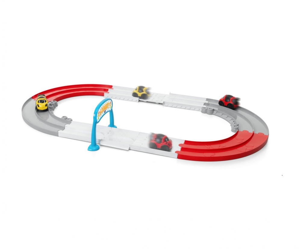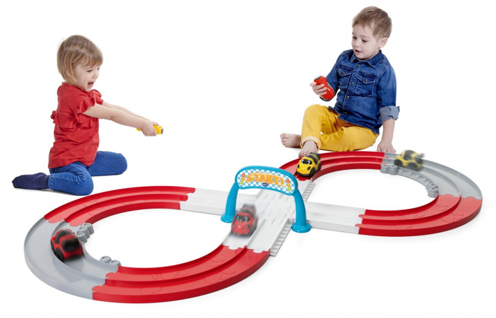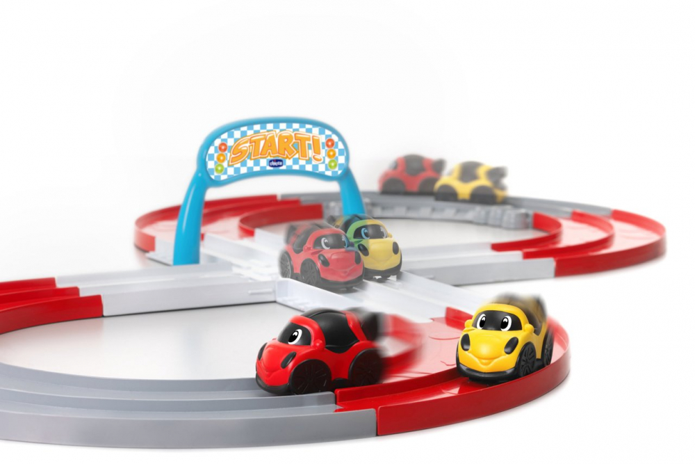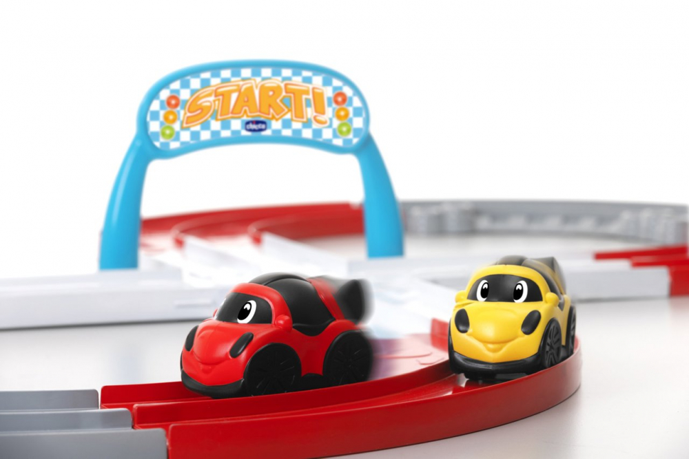 - Circuit de curse cu 2 jucători: Circuitul de curse Chicco permite 2 jucători să concureze folosind două mașinuțe controlate de la distanță – una roșie și una galbenă. Ideal pentru a stimula interacțiunea între copii și părinți sau prieteni, acest joc încurajează cooperarea și spiritul de competiție.