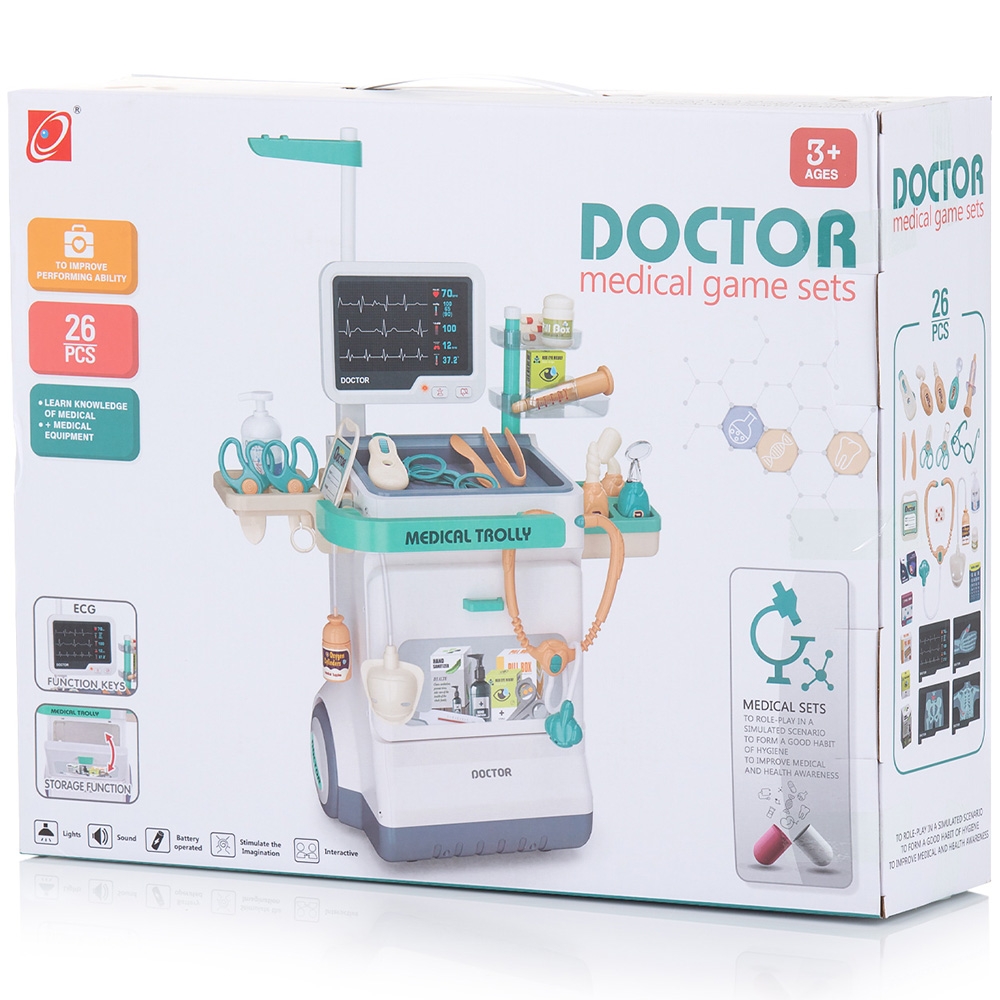 • Setul de joaca Doctor este o jucarie interactiva educationala pentru copii mai mari de 3 ani, pe o tema medicala cu diferite jucarii si accesorii pentru a-i invata pe copii despre profesia de medic, echipamentele si activitatile medicale