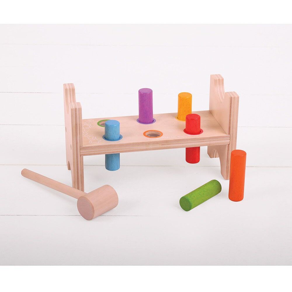 Setul este realizat integral din lemn si este perfect pentru dezvoltarea coordonarii ochi-mana la copiii mici.