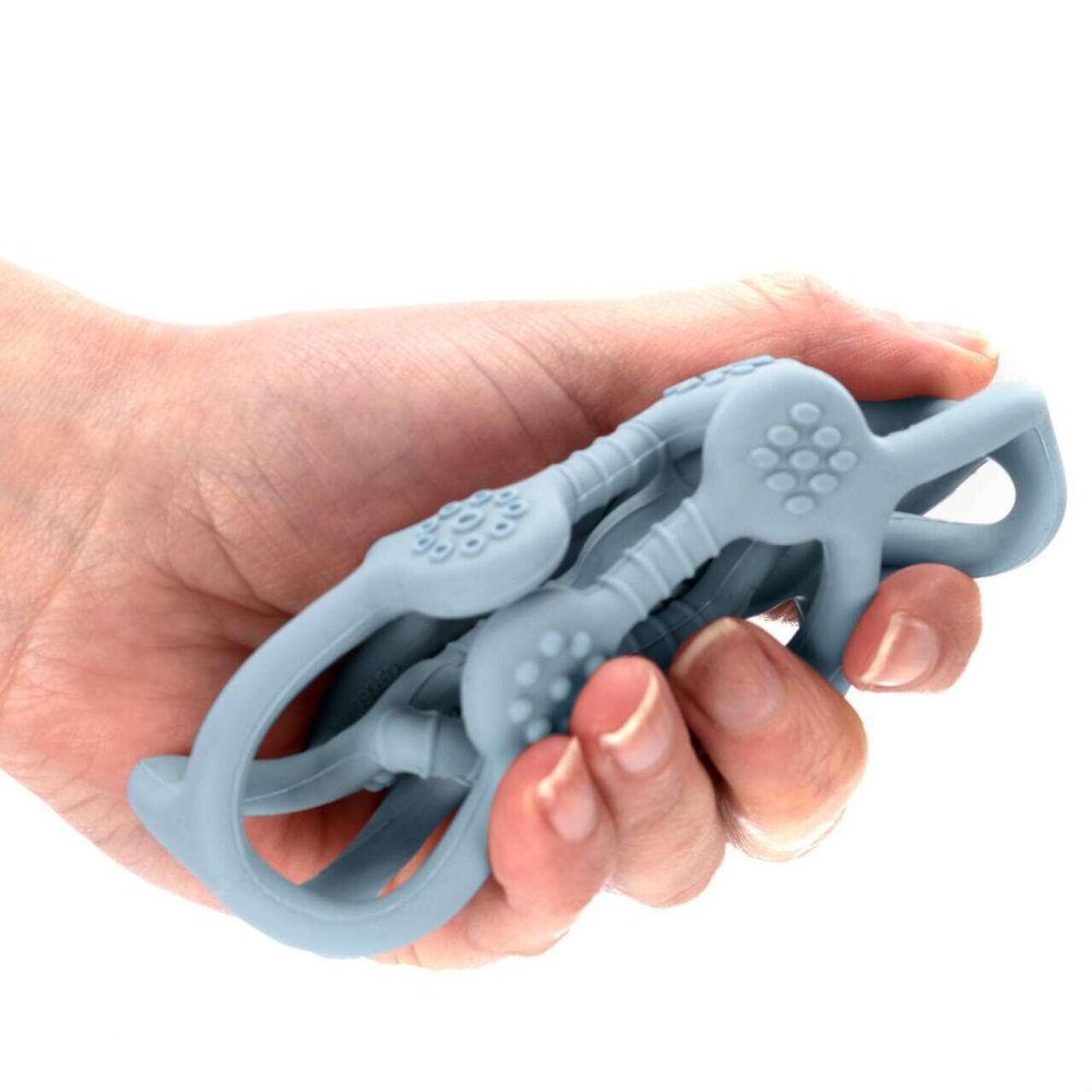 Jucaria pentru dentitie Bite&Play, pe langa a fi un ajutor calmant pentru dentitie datorita diverselor texturi care ofera o senzatie de ameliorare a durerii dintilor, dezvolta abilitatile motorii fine si coordonarea intre vedere si miscarea mainilor.