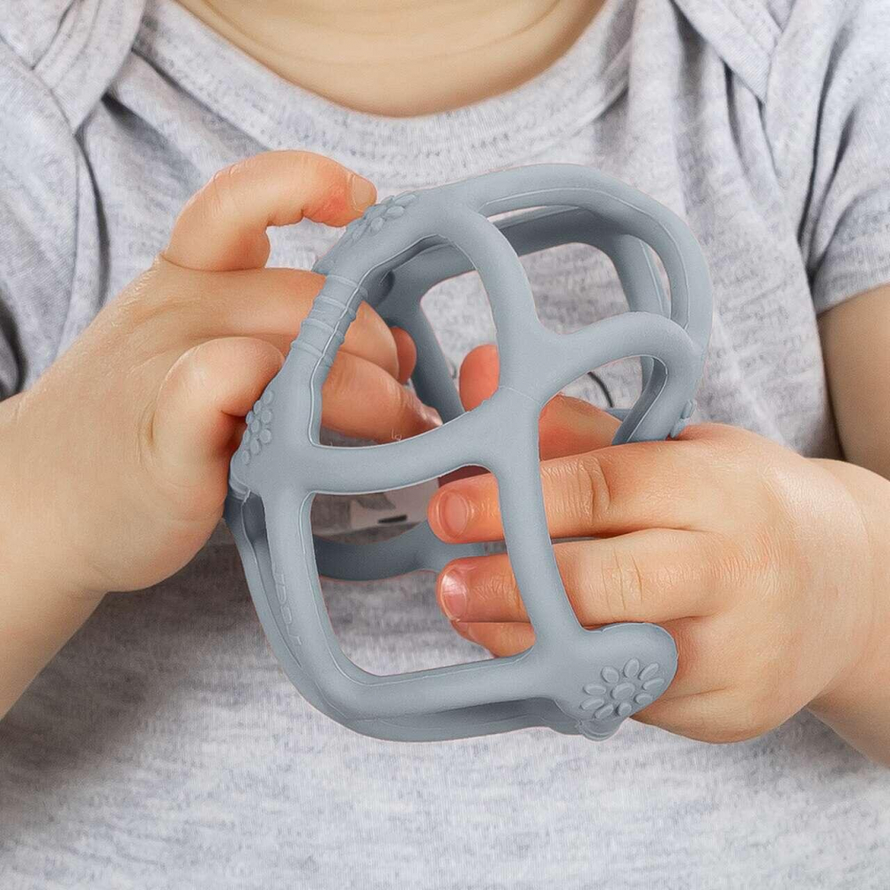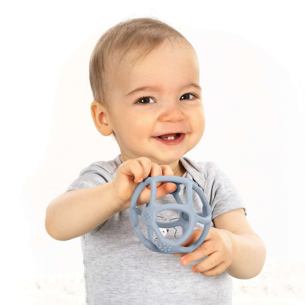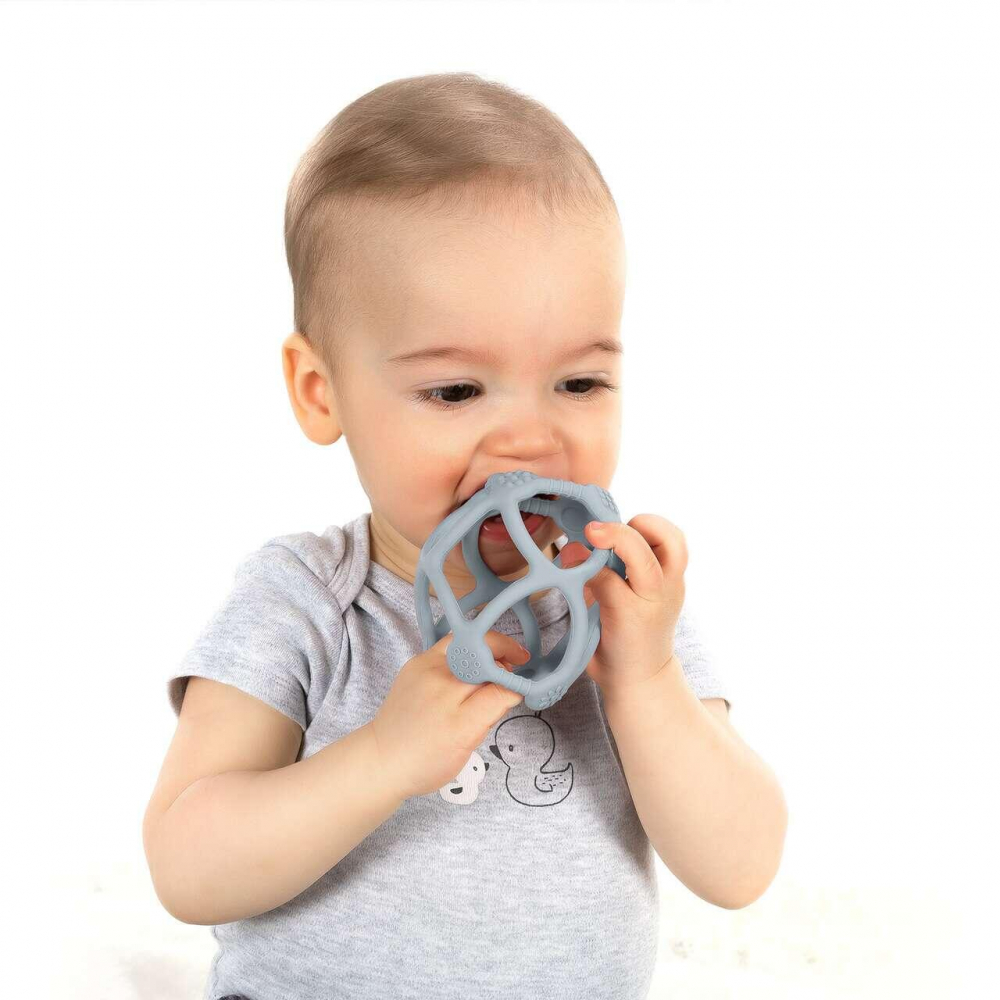 Prin strangerea si mestecarea sau roaderea ei, mingea Bite&Play poate ajuta, deoarece le ofera bebelusilor un calmant pentru gingiile dureroase, in timp ce ii invita sa se joace si sa descopere forme, texturi, culori, antrenand astfel reflexele copilului.