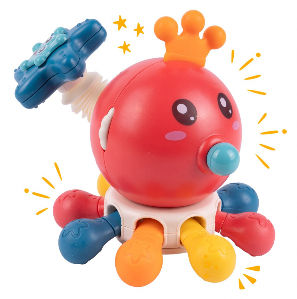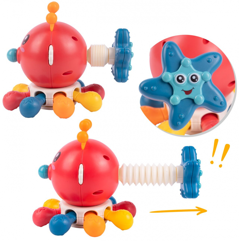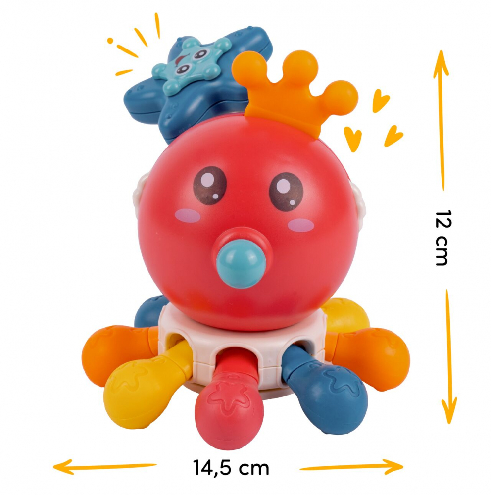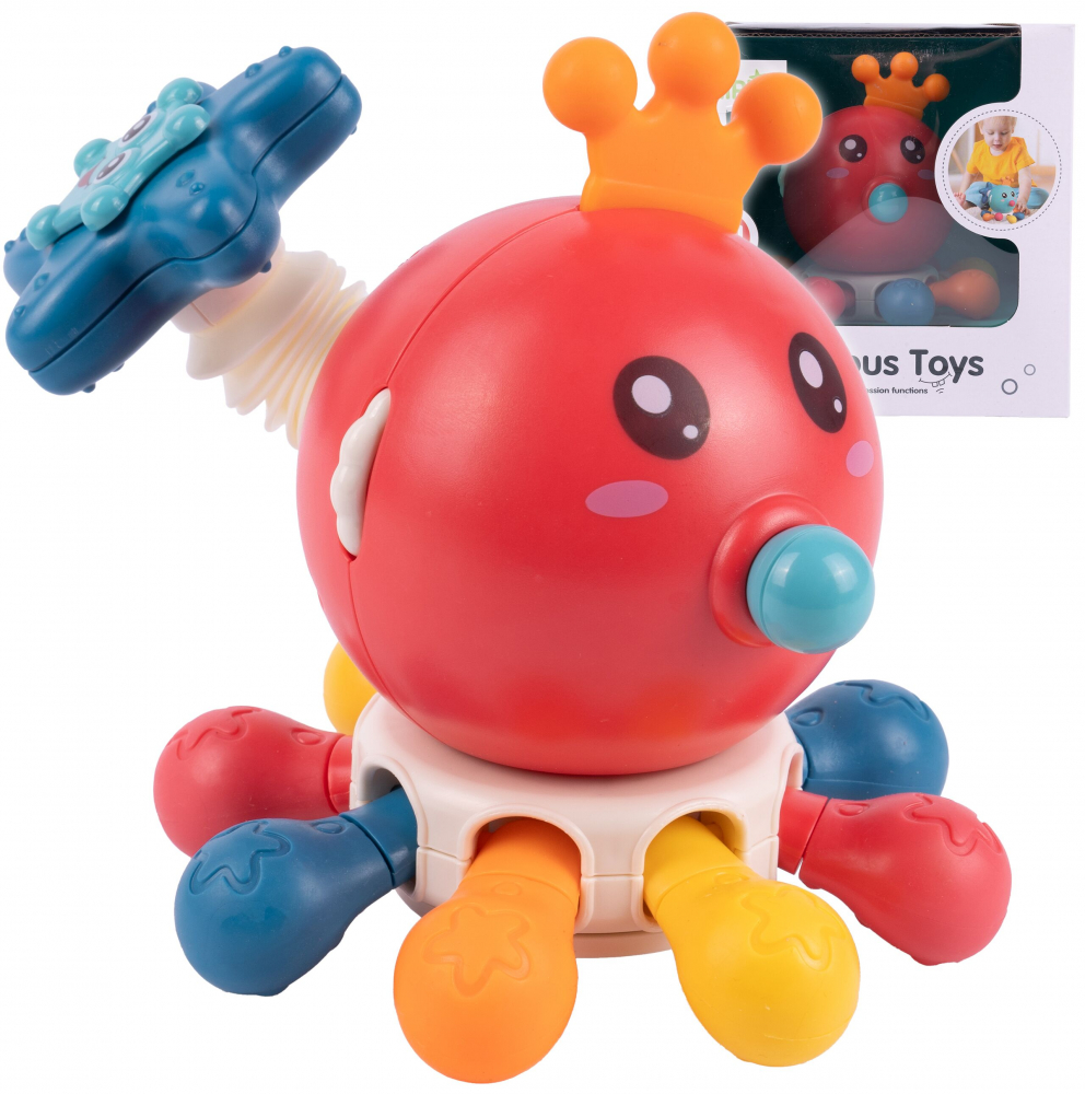 Jucarie senzoriala interactiva pentru bebelusi 10in1 Happy Octupus Red