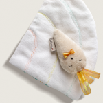 Conceputa de un psihoterapeut, jucaria contine piese esentiale dezvoltarii timpurii. Textura moale si materialele certificate din care este realizata, precum si faptul ca este prevazuta cu o agatatoare la care se poate atasa suzeta, o fac extrem de potrivita ca jucarie de atasament, incepand cu primele saptamani de viata ale bebelusului.