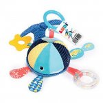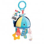 Jucarie senzoriala in forma de Balena cu activitati multiple care stimuleaza simturile, motricitatea fina si apucarea, este o jucarie de invatare timpurie care poate fi agatata oriunde.