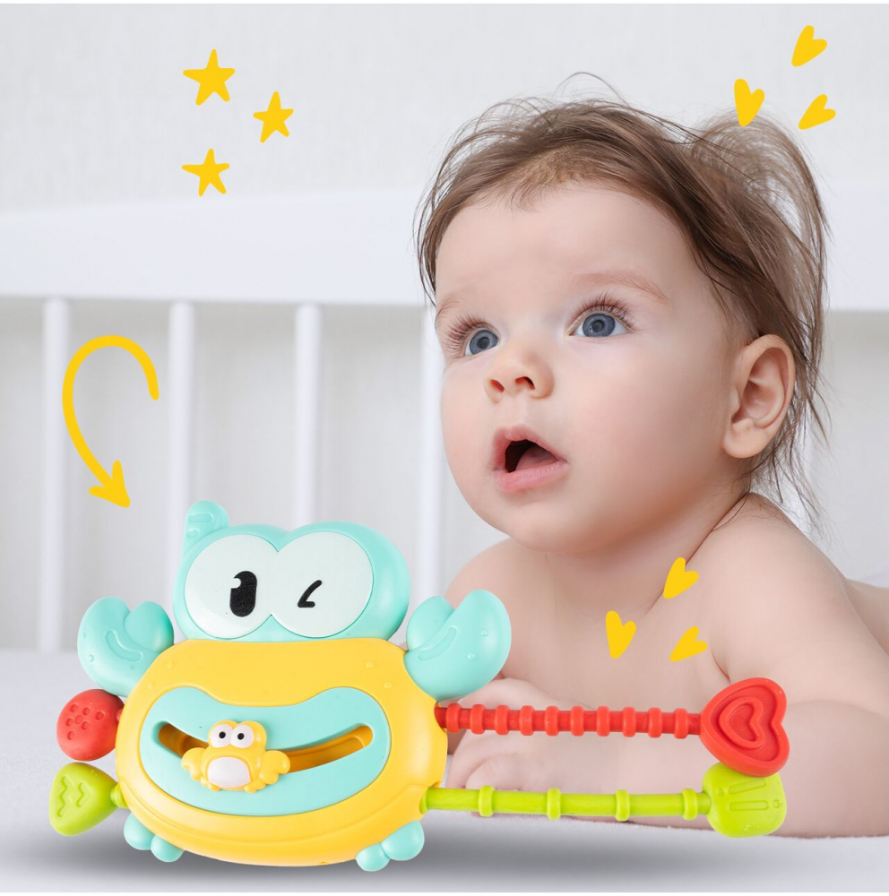 * Descopera o lume a texturilor, culorilor si senzatiilor cu acest crab interactiv senzorial, conceput pentru a stimula dezvoltarea motorie si senzoriala a copilului tau.