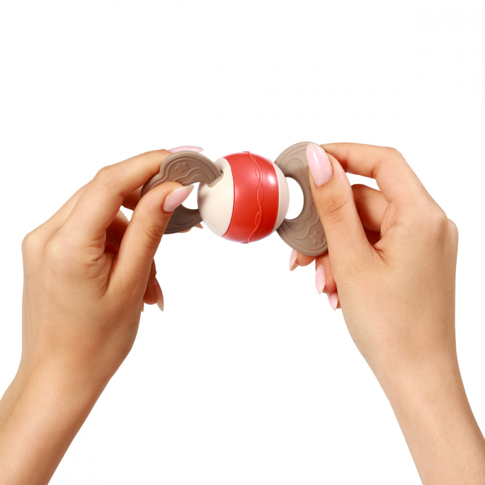Atunci când un bebeluș scutură jucaria, mărgelele sale colorate emit sunete care captează atenția copilului și îi dezvoltă auzul.