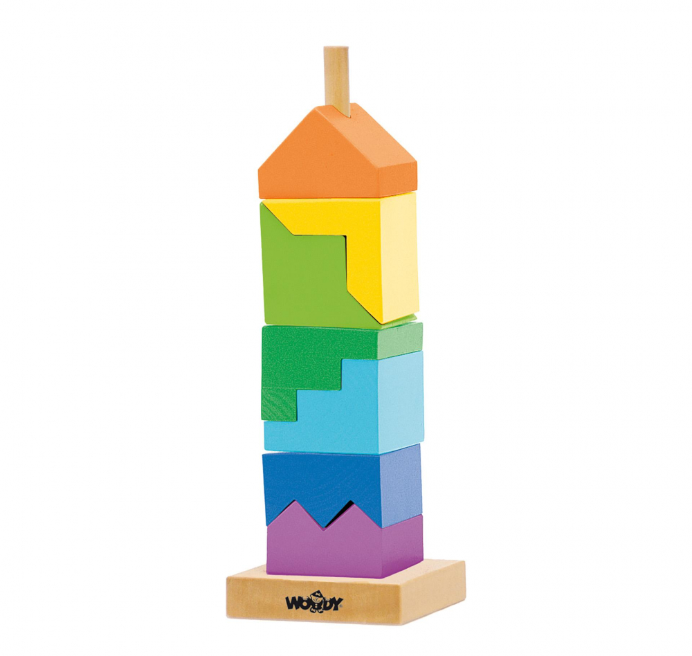 Turnul este alcatuit din diferite piese colorate, care au o forma diferita.
