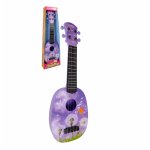 Chitara pentru copii Malplay, design robust cu 4 corzi si plectru in forma de inima inclus, dimensiune 54.5 x 17.5 x 6 cm, Mov