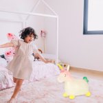Acest jumper de cauciuc colorat, moale si flexibil, in forma de calut (sau unicorn!), ii incurajeaza pe cei mici sa se miste activ, sustinand in acelasi timp dezvoltarea echilibrului, a coordonarii si a fortei musculare.