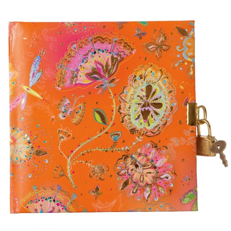 Copertiile sunt facute dintr-un carton tare si sunt ilustrate cu elemente decorative inspirate din natura si embosata cu vopsea aurie, ce lasa urme si forme in relief. Incuietoarea jurnalului este sigura, avand un lacat din metal auriu cu 2 cheite. Dimensiune: 17x17 cm