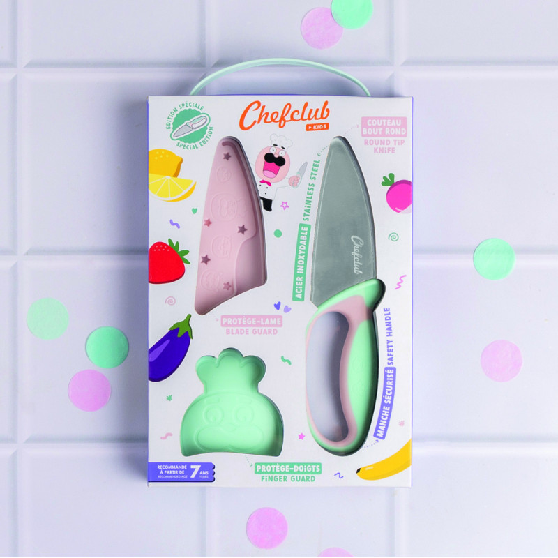 Kit cutit de bucatar pentru copii, Roz si Verde pastel, Chefclub Kids