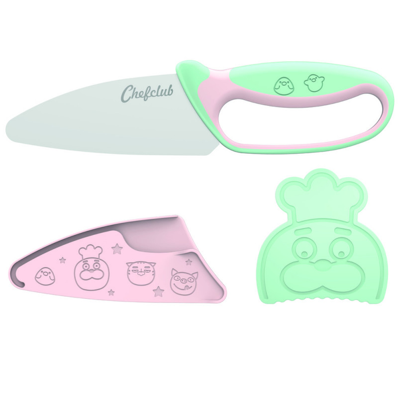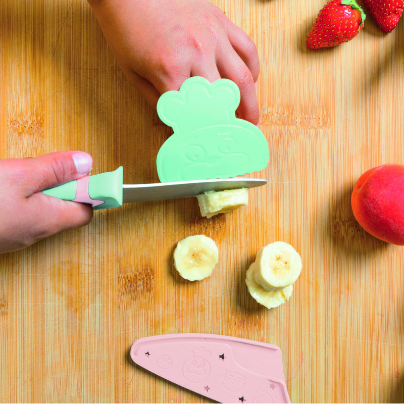 Setul Cutitul de Bucatar pentru Copii, Roz si Verde pastel este ideal pentru micii bucatari!
