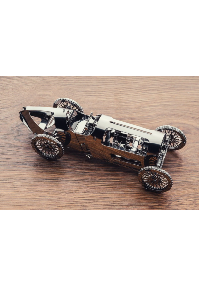 Kit Puzzle mecanic 3D metal TimeForMachine model masina de curse vintage Silver Bullet