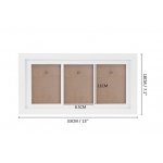 Rama foto tripla este impartita in doua spatii dedicate mulajului manutei si piciorusului micutilor si un al treilea spatiu unde se poate insera o fotografie haioasa a acestora.