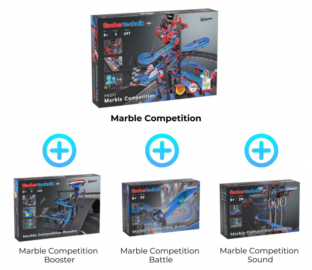 Kit Stem Fischertechnik Completare pentru cursa cu bile metalice Intrecerea 77 piese