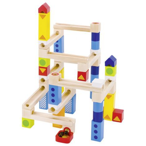 Cele 55 de părți din lemn masiv dezvolta creativitatea. Posibilitățile de asamblare sunt nelimitate. Simțiți-vă liber să combinați cu jucăriile existente.
